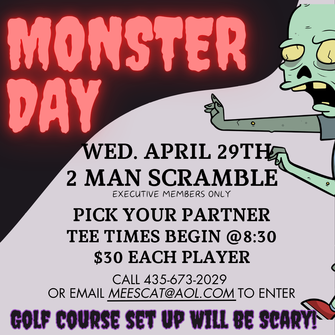 Monster Day Wednesday, April 29, 2026 8:30 AM 2:00 PM 08:30 14:00 Bloomington Country Club 3174 South Bloomington Drive East St. George, UT, 84790 United States (map) Google Calendar ICS
