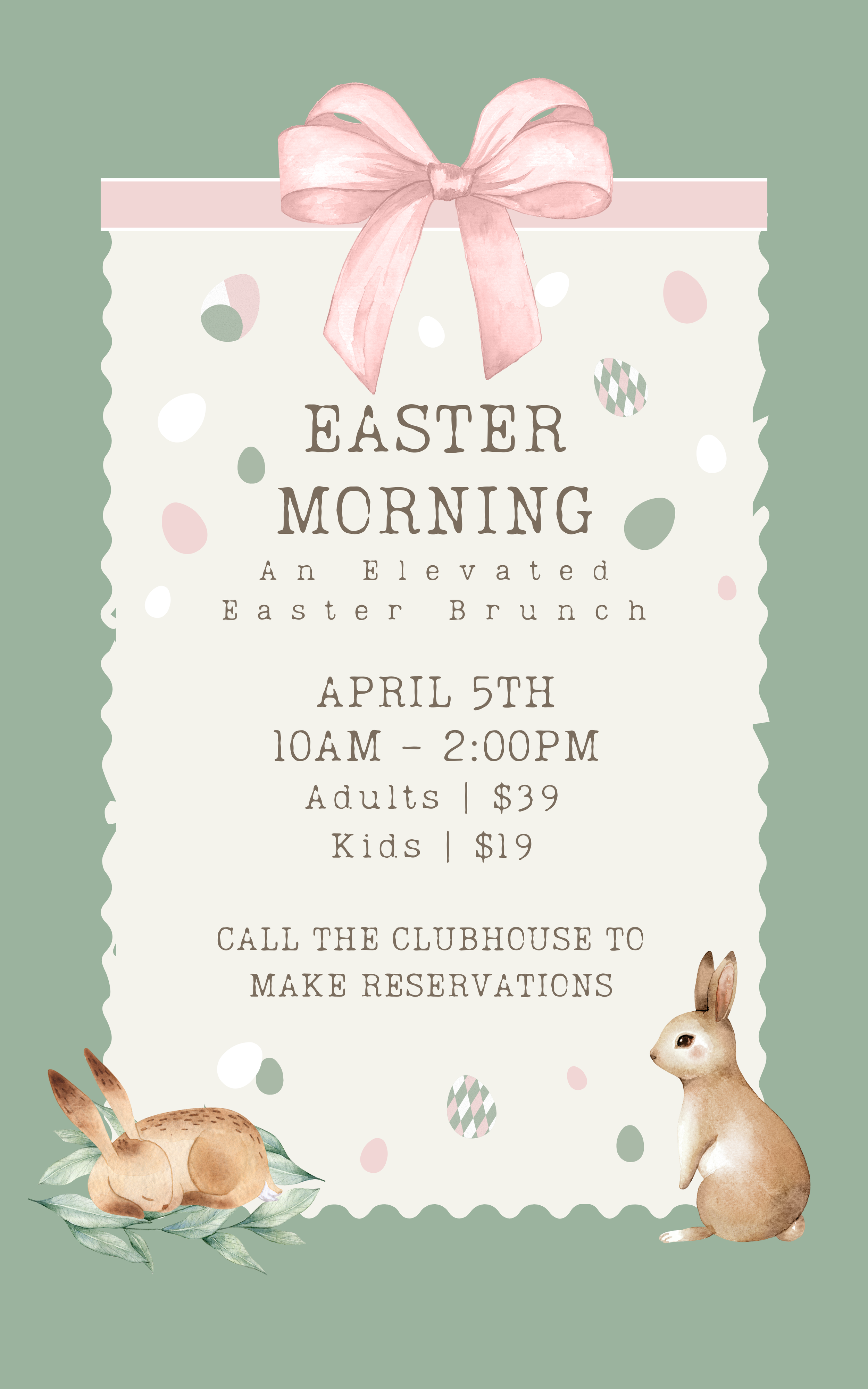 Easter Sunday Brunch Sunday, April 5, 2026 10:00 AM 2:00 PM 10:00 14:00 Bloomington Country Club 3174 South Bloomington Drive East St. George, UT, 84790 United States (map) Google Calendar ICS